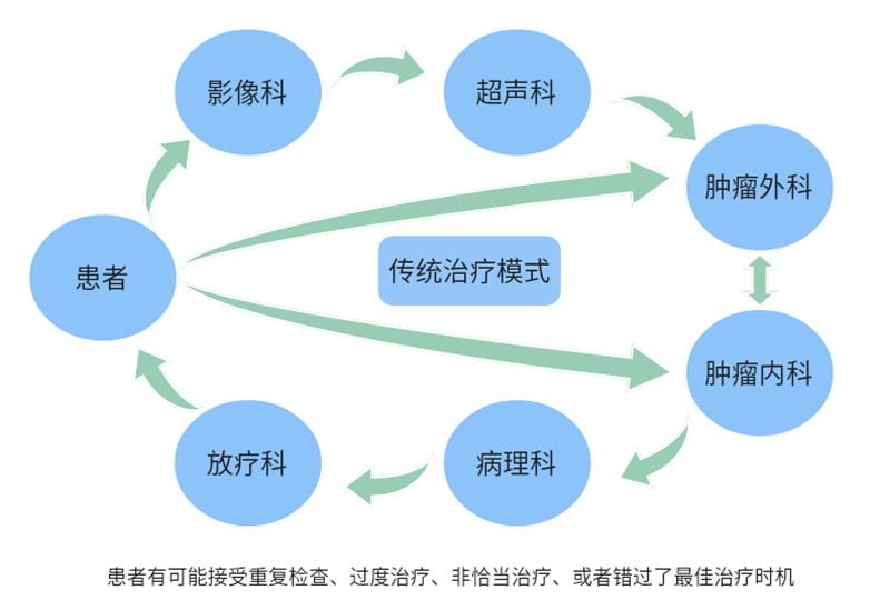多學科協作(zuò)診療團隊模式(簡稱MDT):是由多個相(xiàng)關學科的專家組成相(xiàng)對固定的專家組,針對疾病進行“一站(zhàn)式”臨床討(tǎo)論會,從(cóng)而提出适合患者的最佳治療方案,繼而由相(xiàng)關學科單獨或多學科聯合執行共同制定的治療方案。